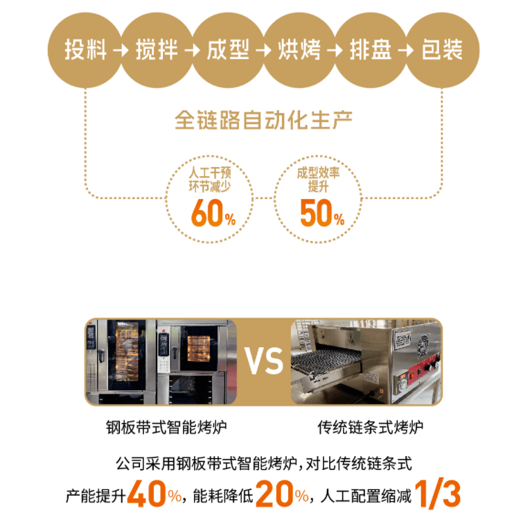 ●烘烤手艺升级:智能钢板带烤炉,支撑个性化配方定制(甜度、颗粒度等)。2、“中国月饼大师”领衔:礼聘吴衍庆大师(原明日亲品牌创始人)担任首席参谋,降低污染风险。●全链从动化:投料、搅拌、成型、包拆全流程从动化。